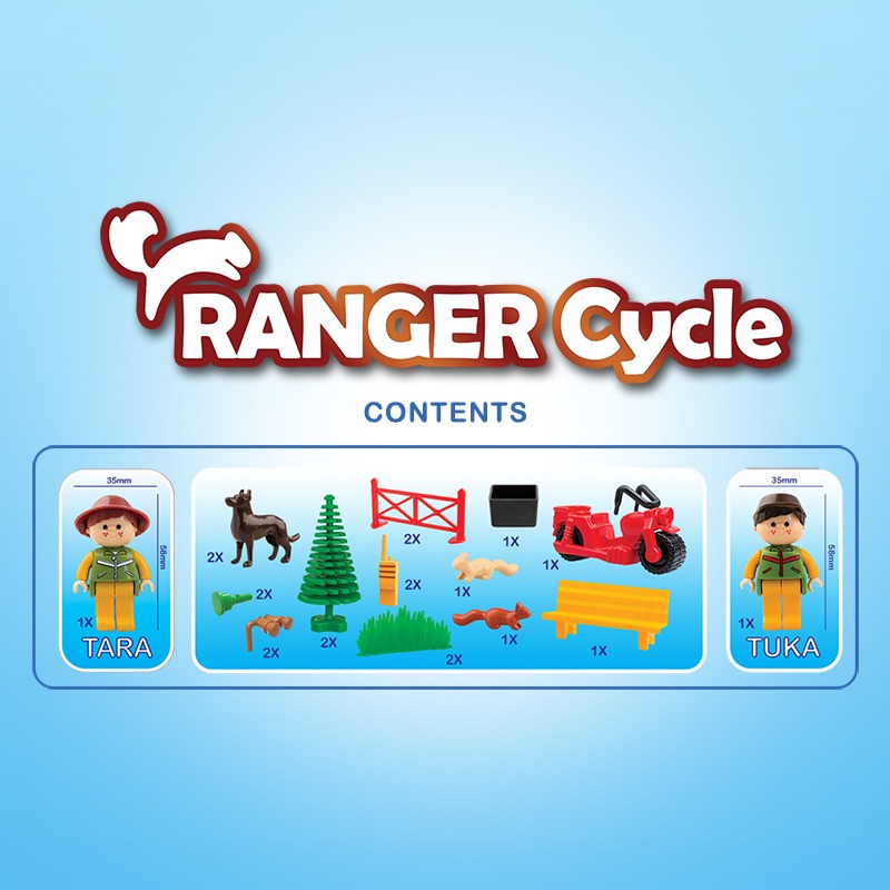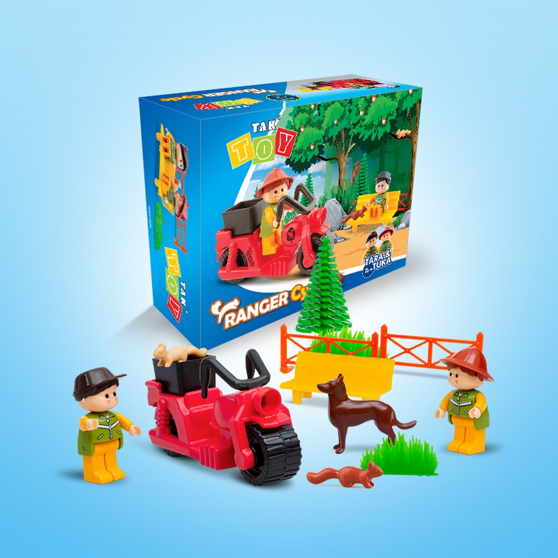 سرى رنجر سيكلت و رنجر جيپ برند تك توى با هدف آموزش مفاهيم اجتماعى و پرورش خلاقيت كودكان طراحى و توليد شده است . كودكان مى توانند متناسب با قطعات و وسايل متنوع و جذابى كه در اختيارشان قرار ميگيرد ، موقعيتهاى مختلفى را بسازند وبا هم ذات پندارى با دو عروسك تارا وتوكا در حفاظت از جنگل و محيط زيست و مراقبت از سنجابها همراه شوند و هيجان را تجربه نمايند . با توجه به اينكه اسباب بازى يك وسيله بسيار موثر در آموزش و انتقال مفاهيم به كودكان است درسرى رنجرسيكلت علاوه بر سرگرمى و هيجان ، آموزش وتقويت بازه ى وسيعى از مهارتها و تواناييها مورد توجه قرار گرفته است .والدين و مربيان مى توانند مفاهيم اجتماعى ديگرى مانند ، همكارى ، مسوليت پذيرى ،فداكارى وبخشندگى ،هوشيارى و …را با كمك اين مجموعه به صورت غير مستقيم و جذاب به كودكان آموزش دهند در بسته بندى زيبا وبا كيفيت رنجر سيكلت و رنجر جيپ ، قطعاتى مانند دوربين ، چراغ قوه ودستگاه بيسيم و هم چنين درخت و سنجاب و سگ نگهبان و…فرصت بيشترى براى كودك فراهم مى كند تا موقعيتهاى متنوع و جذاب را خلاقانه بسازد. همچنين ويژگى مهم ديگر اين مجموعه قابليت استفاده متنوع از موتورسيكلت يا جيپ است كه كودك بتواند از حالتهاى مختلف آن لذت ببرد . سرى رنجر سيكلت و رنجر جيپ مجموعه مستقلى است كه مى تواند براى تكميل و گسترش سرى كلبه جنگلى وسرى نگهبان از محصولات گروه تك توى تهيه و استفاده شود و دامنه ى وسيعترى از امكانات را براى بازى و اموزش در اختيار كودكان و والدين و مربيان قرار دهد